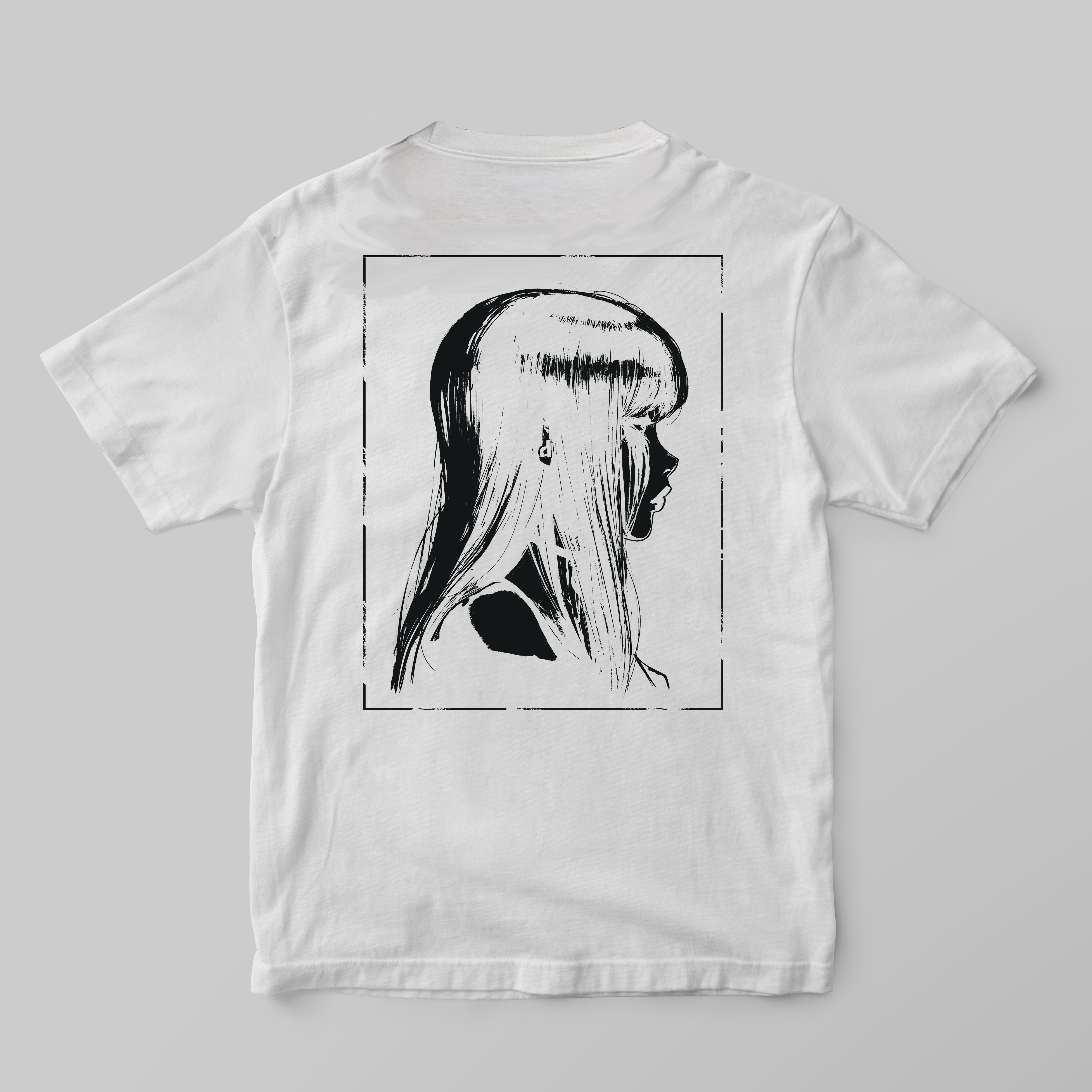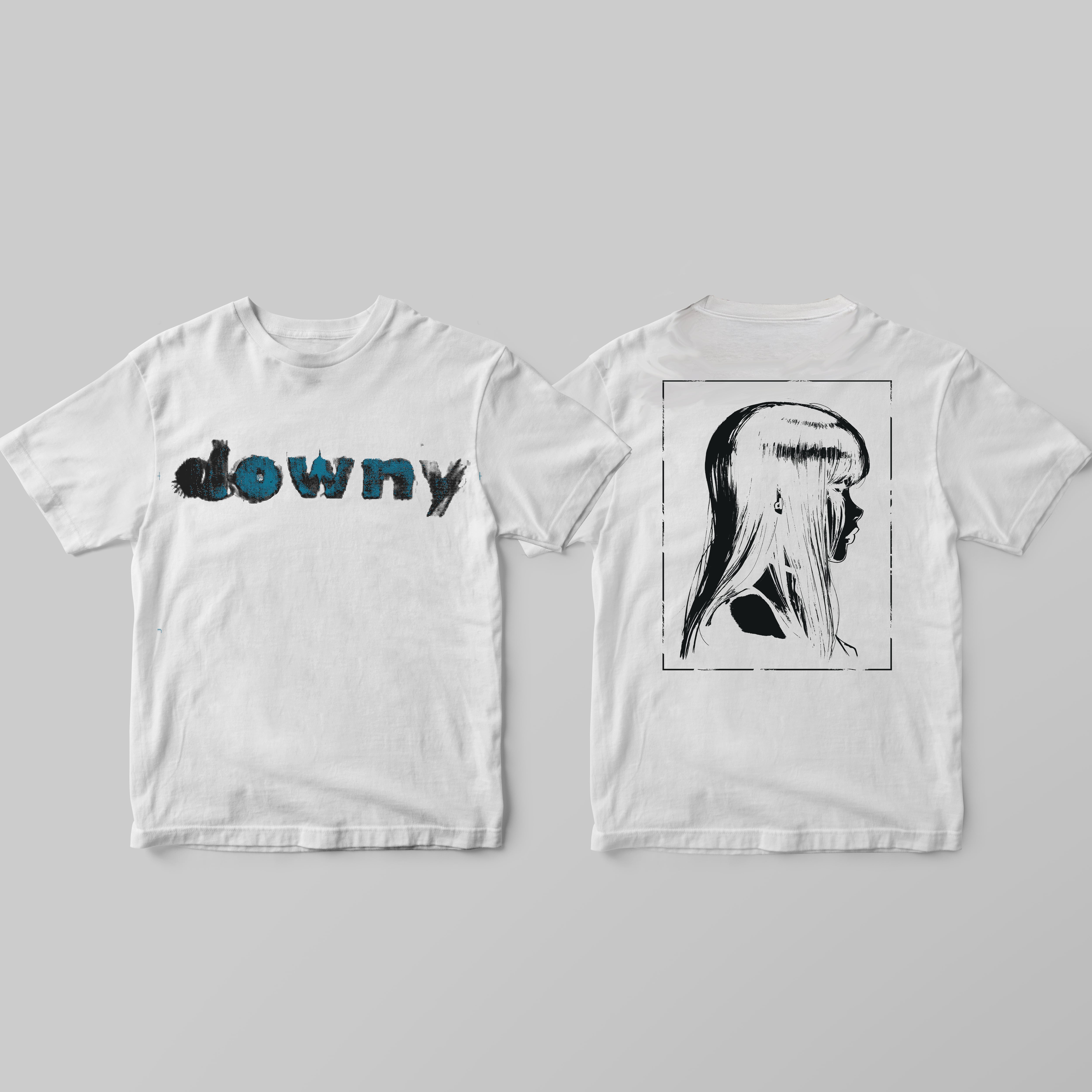 『攻殻機動隊 SAC_2045』のキャラクターデザインなどを手がけたロシア出身のイラストレーター イリヤ・クブシノブ がアートワークを担当したdowny最新アルバム 第八作品集『無題』のジャケットデザインを二階調化したモノクロバージョンをバックにガツンと大判プリント。